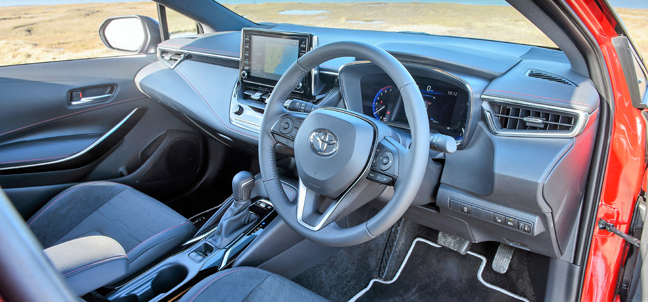 Driving the car was a revelation. With a multi-adjustable driver’s seat and steering column, the driving position, while perhaps an inch too high, was very comfortable. The new Corolla gives a good impression of airiness and space, an aspect helped immeasurably by the glass roof, which has an electric roll-back shade. The revised 2.0-litre power unit is unquestionably punchy, despatching the 0-60mph standing start in a zesty 8.0s, before topping out at a restricted 112mph, with deference to its tried and trusted hybrid technology.