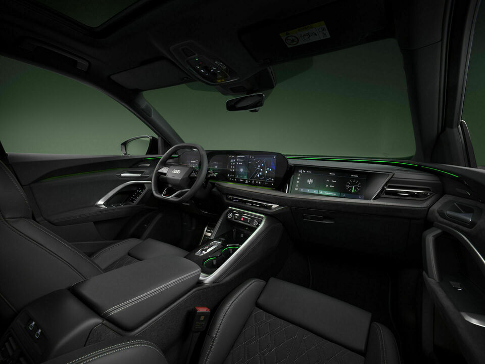 The interior of the new Q5 Sportback is systematically tailored to the needs of the occupants and epitomizes the new Audi design philosophy. Material properties were considered at a very early stage in the design, and together with the Audi MMI panoramic display and the MMI passenger display, form a visually distinct digital stage. The high-contrast interior design purposefully places elements in the foreground or background, creating a three-dimensional spatial architecture that blends aesthetics with ergonomics. The interior has a markedly cozy ambiance. The “Softwrap” extends from the doors through the entire cockpit to the center console, creating a homogeneous and welcoming sense of space. In addition to being user-focused, the interior is sustainable. Materials such as Cascade upholstery and Dinamica microfiber are primarily made from recycled polyester, demonstrating Audi is also committed to using resources sustainably and efficiently in the Q5 Sportback.
