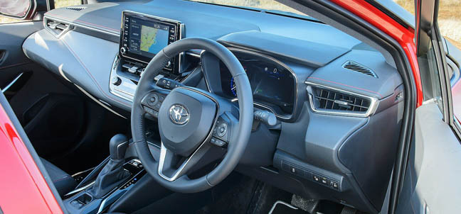 The top 'GR Sport variant gets special 17 or 18-inch wheels, plus sports front seats upholstered in fabric with a dedicated pinstripe pattern and with seatback and cushion bolsters finished in black and grey synthetic leather. All Corollas get as standard the full package of 'Toyota Safety Sense' camera-driven safety features. These include autonomous braking, adaptive cruise control, Lane Trace Assist, Road Sign Assist and Automatic High beam.