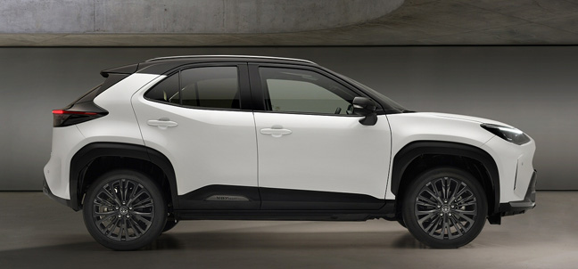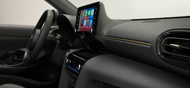 'Dynamic' spec will suffice for most, with this model getting SUV-like design cues in terms of a front under-run and a lower bumper protection plate at the rear. The specification also includes a set of silver roof rails and 18-inch wheels with a dark grey finish. In the cabin of a 'Dynamic'-spec Yaris Cross, a sense of purpose is expressed in piano black trim details and a black headlining. The supportive seats are upholstered in a supple, leather-like material with a specific Dynamic pattern and there is a deco line running across the black, soft-touch instrument panel and inner door mouldings, finished in Yaris Cross's signature Warm Gold colour. Leather is used for the steering wheel and shift lever gaiter.